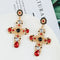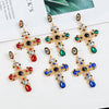 Nova chegada do vintage preto rosa cristal cruz brincos para mulheres barroco boêmio grandes brincos longos jóias brincos 2023