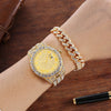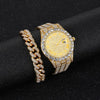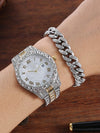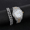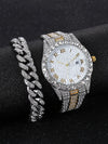 O Conjunto D-amond Female é a combinação perfeita de luxo e estilo. Com seu movimento de quartzo, display de numerais romanos e fecho de pulseira, este conjunto de relógio e pulseira cravejados em liga é perfeito para mulheres que apreciam o trap/rap/hiphop. Adicione um toque de classe ao seu pulso com este conjunto exclusivo.
