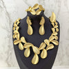 Conjunto de joias banhadas a ouro em formato de folha, 4 peças, para mulheres, colar, brincos, pulseira, anel, festa de casamento, presentes de aniversário