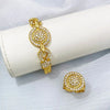 Com um design que captura a essência da moda atemporal, cada peça deste conjunto oferece um brilho dourado que ilumina e valoriza a beleza natural de quem o usa.