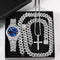Aumente o seu estilo com o Conjunto 4 em 1 Cravejado! Com relógio, pulseira e correntes cravejadas de pedras 5A e Strass, em uma liga de zinco resistente e elegante. Ideal para complementar looks trap, rap ou HipHop. Aproveite a banhado em 5 camadas de UV para garantir durabilidade.
