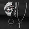 Descubra o conjunto de acessórios que redefine a elegância masculina. Este conjunto inclui um relógio de quartzo sofisticado, uma pulseira, um colar e um anel, todos projetados para complementar seu estilo com um toque de modernidade.