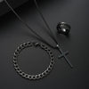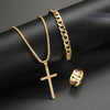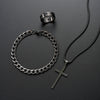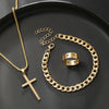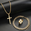 3 pçs conjuntos de jóias de aço inoxidável masculino estilo hip hop gótico com pingente cruz colar anel pulseira conjunto moda presentes simples