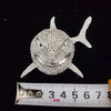 Colar com pingente de tubarão, tamanho grande, para homens, hip hop, joias brilhantes com cristal gelado, corrente cubana miami, joias da moda