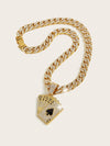 Mythical Projections apresenta a Corrente Cuban Poker com um design geométrico e cristais de liga de zinco. Tamanho de 45 cm para um visual impactante. Adiciona um toque de estilo ao seu look. Edição limitada!
